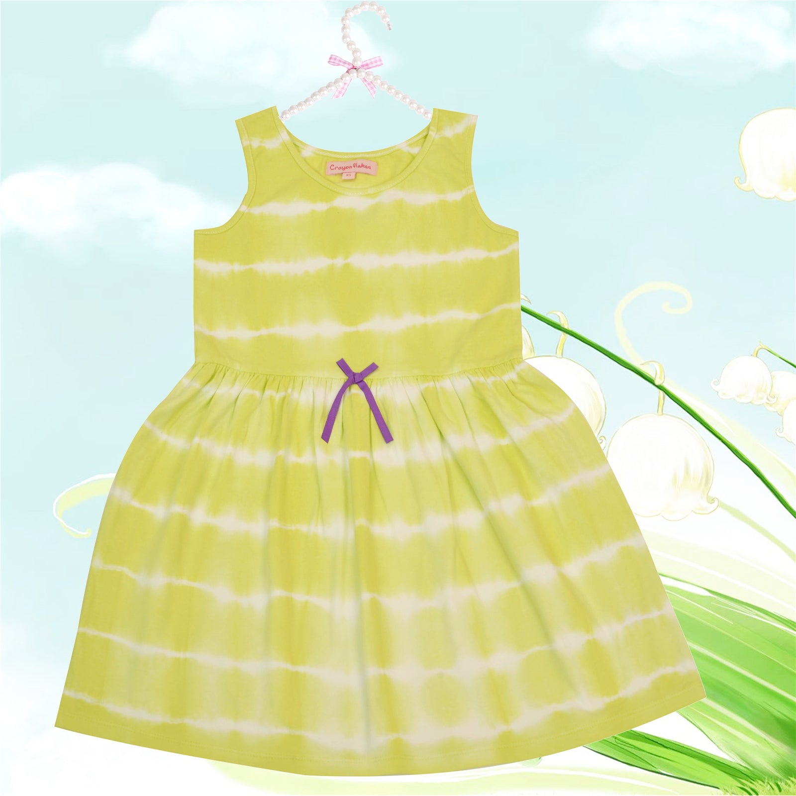 Description - Presenting Comfortable and colorful cotton frock/dress in lemon yellow color from CrayonFlakes. Featuring vibrant lively tie & dye work which kids will love. This dress is without sleeves with a round neck for easy & comfortable wear. Team up this dress with a pair of flip flops or floaters to look super smart and cute. Fabric Care: Use Mild Detergent, 30° Machine wash, Cool Iron, Dry flat in shade, Wash, Dry & Iron inside out.