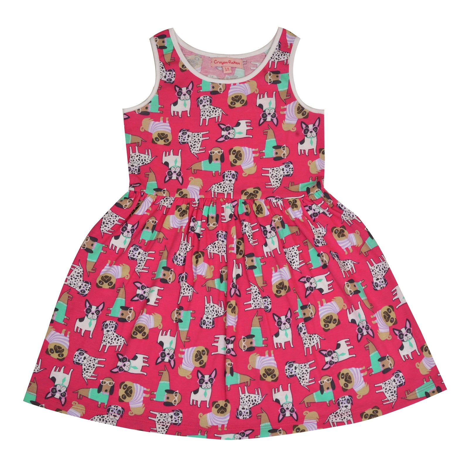 Description - 100% Cotton Presenting Comfortable and colorful frock/dress from CrayonFlakes. Featuring cute puppy print which kids will love. Dress is without sleeves with a round neck for easy & comfortable wear. Team up this dress with a pair of flip flops or floaters to look super smart and cute. Fabric Care: Use Mild Detergent, 30° Machine wash, Cool Iron, Dry flat in shade, Wash, Dry & Iron inside out