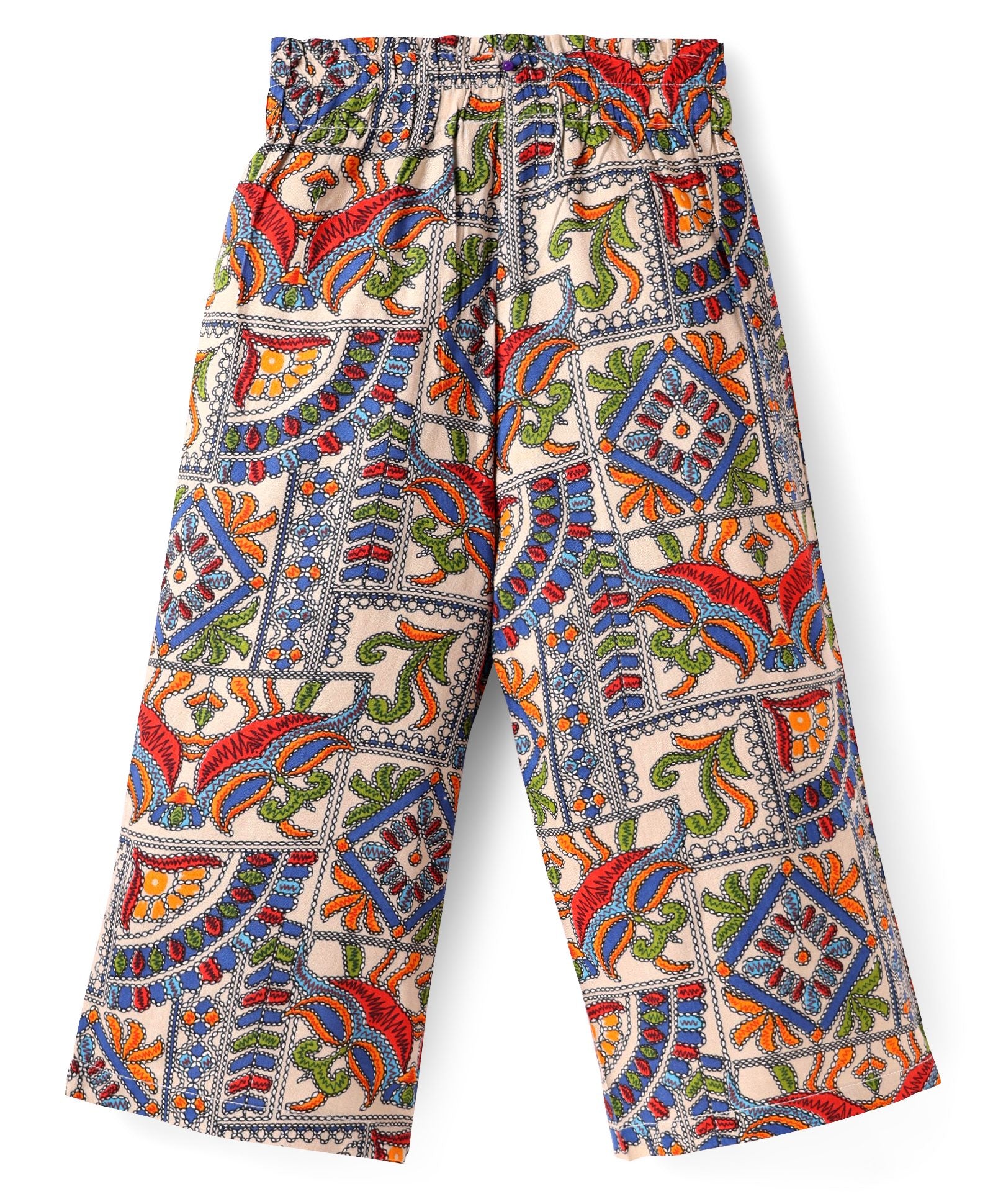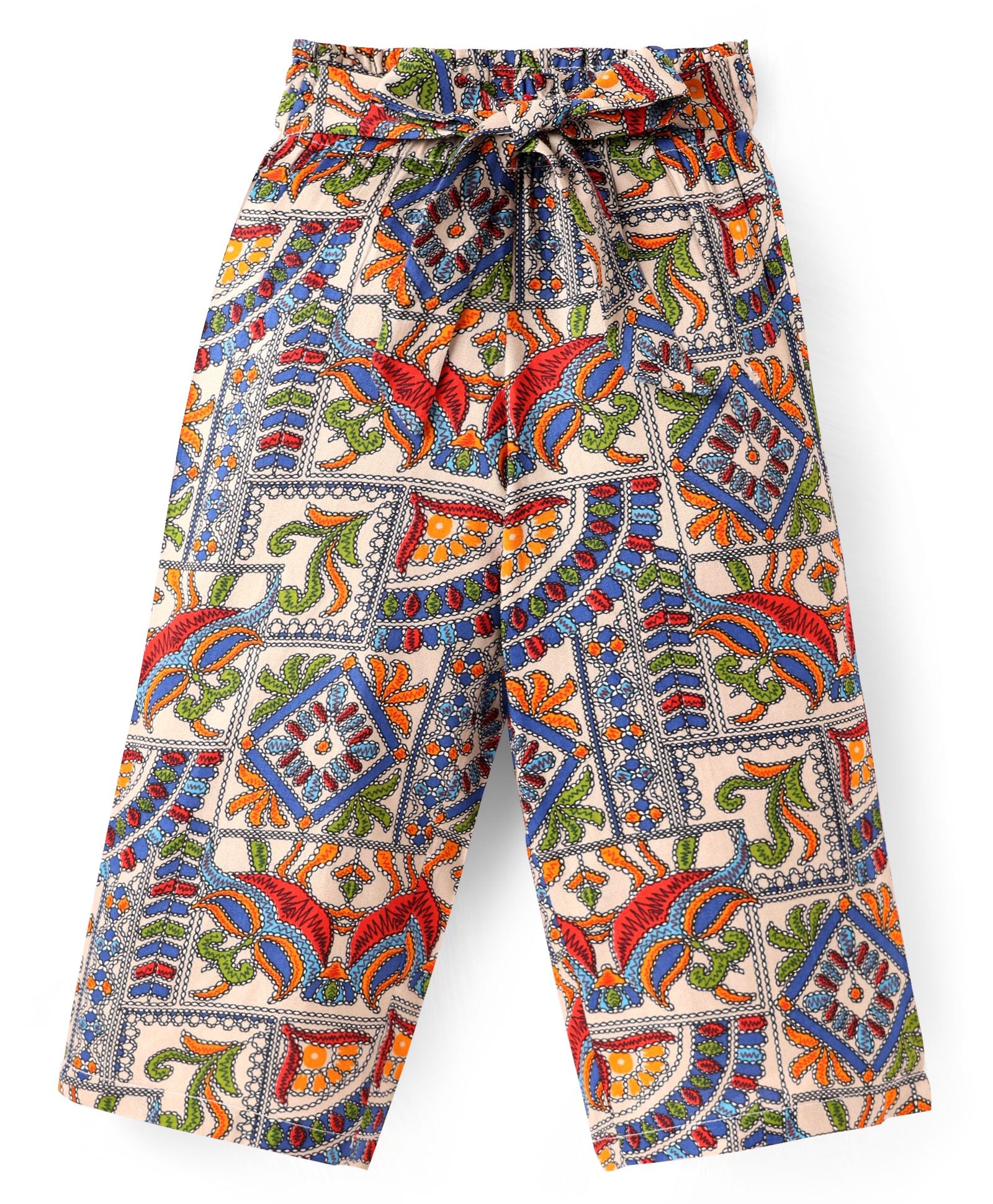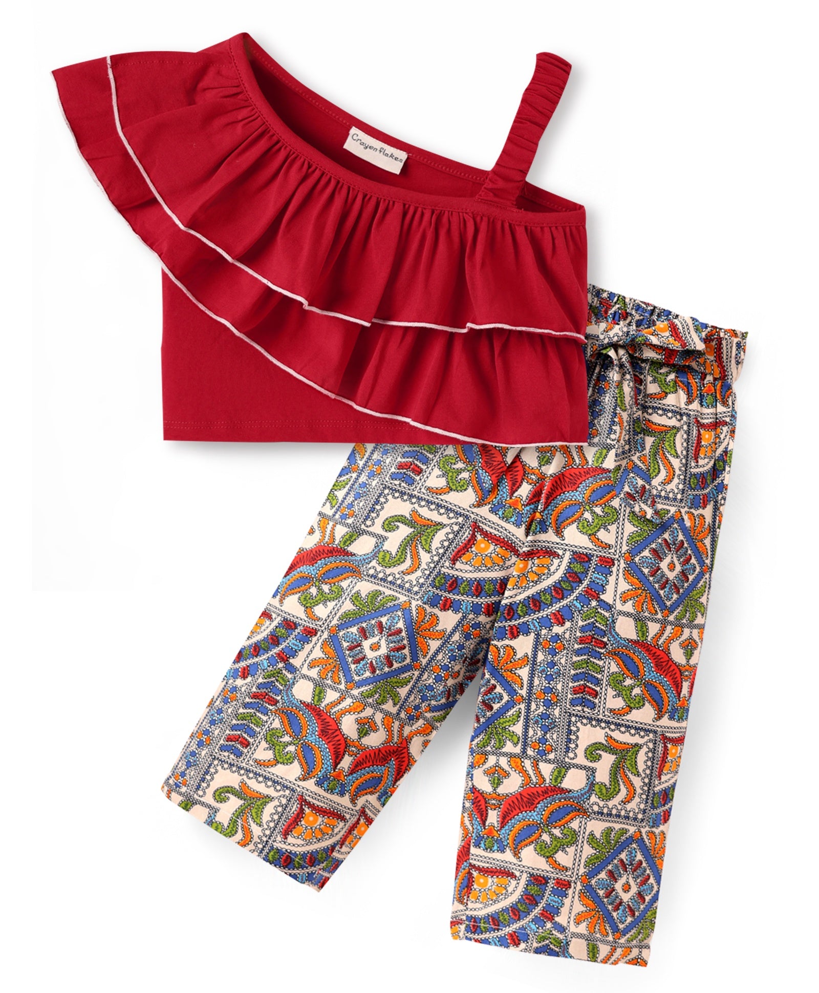 One Shoulder Frilled Crop Top Abstract Belted Palazzo Set