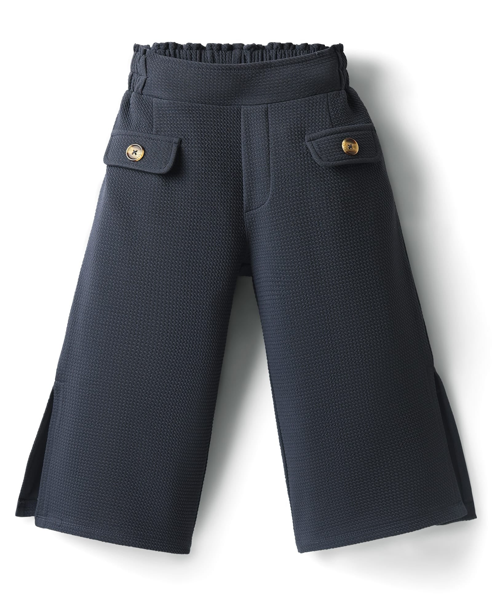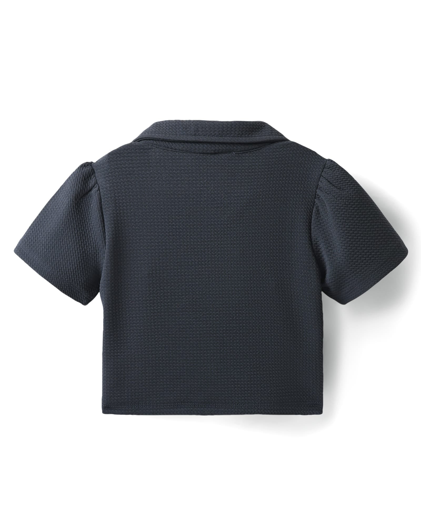 Solid Shirt with Palazzo Co-ord Set - Navy