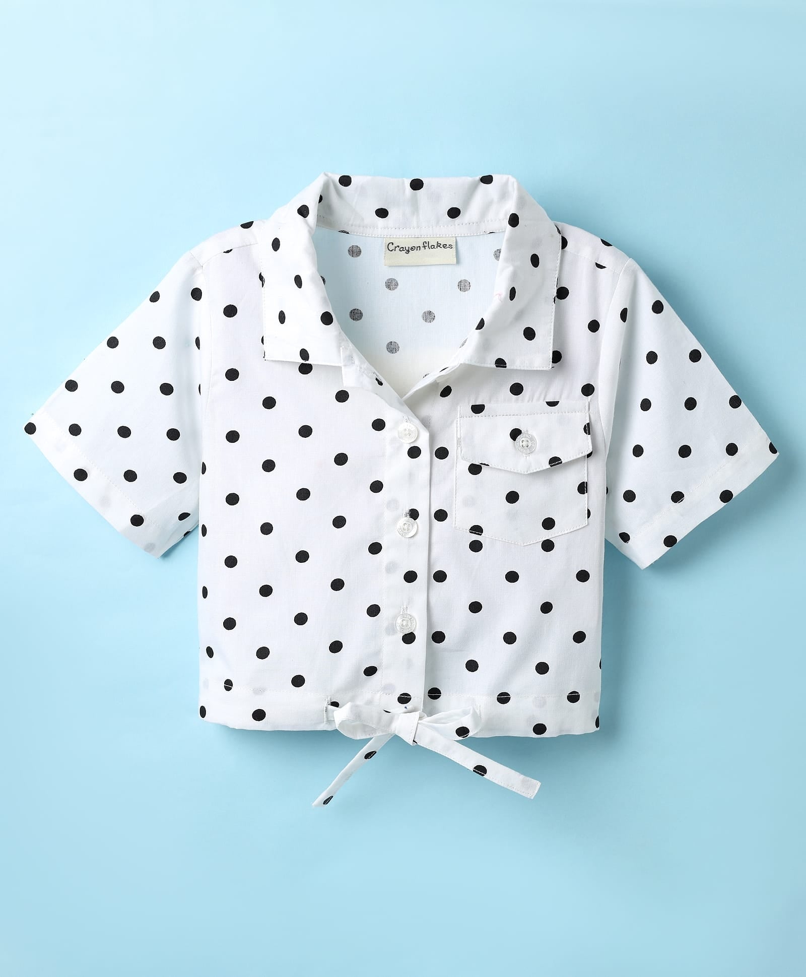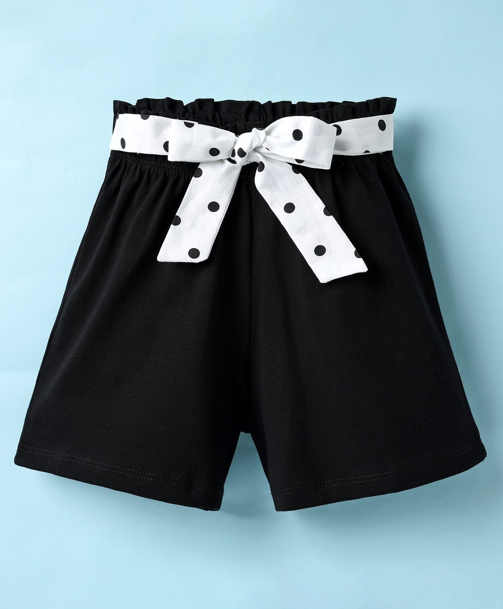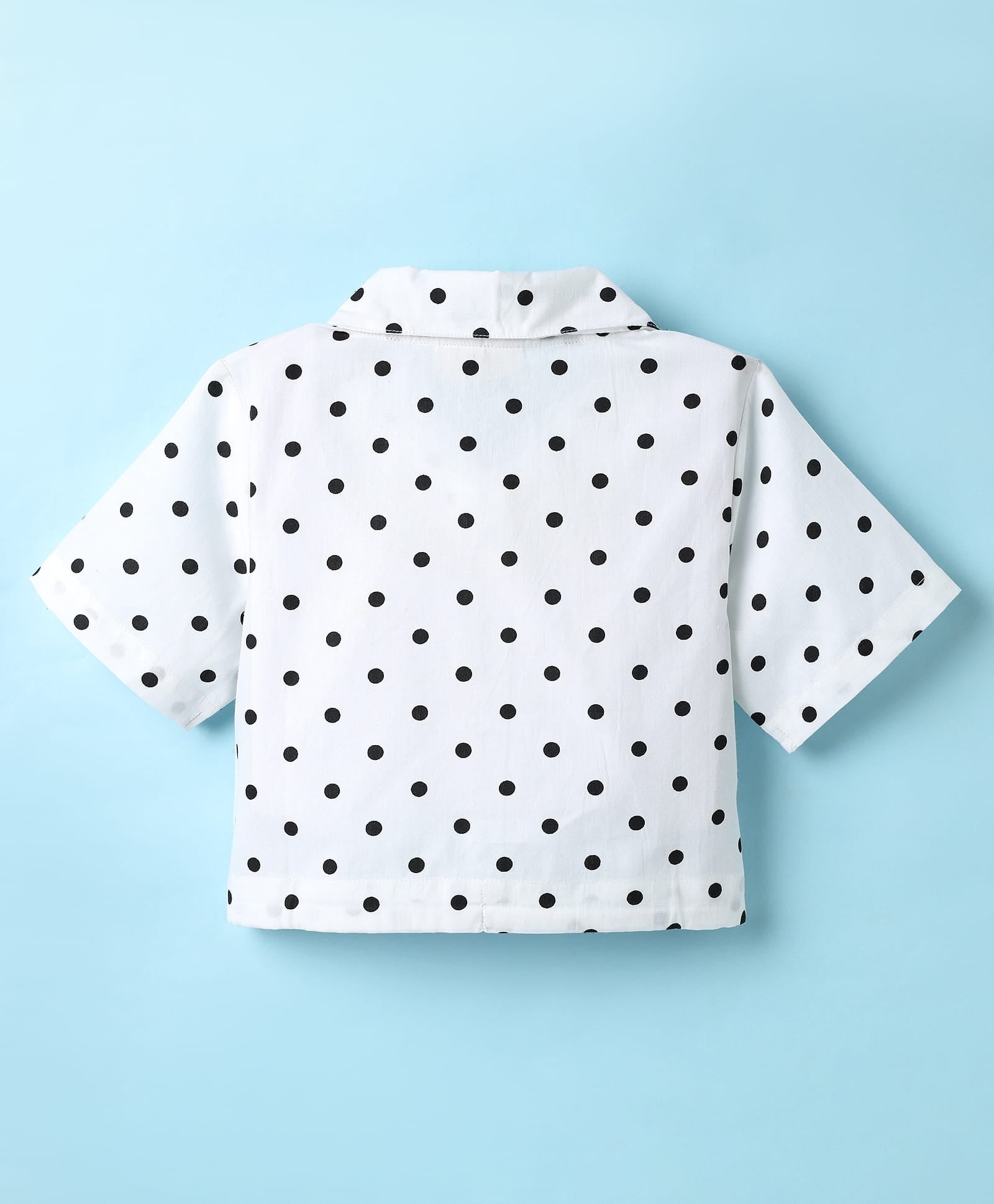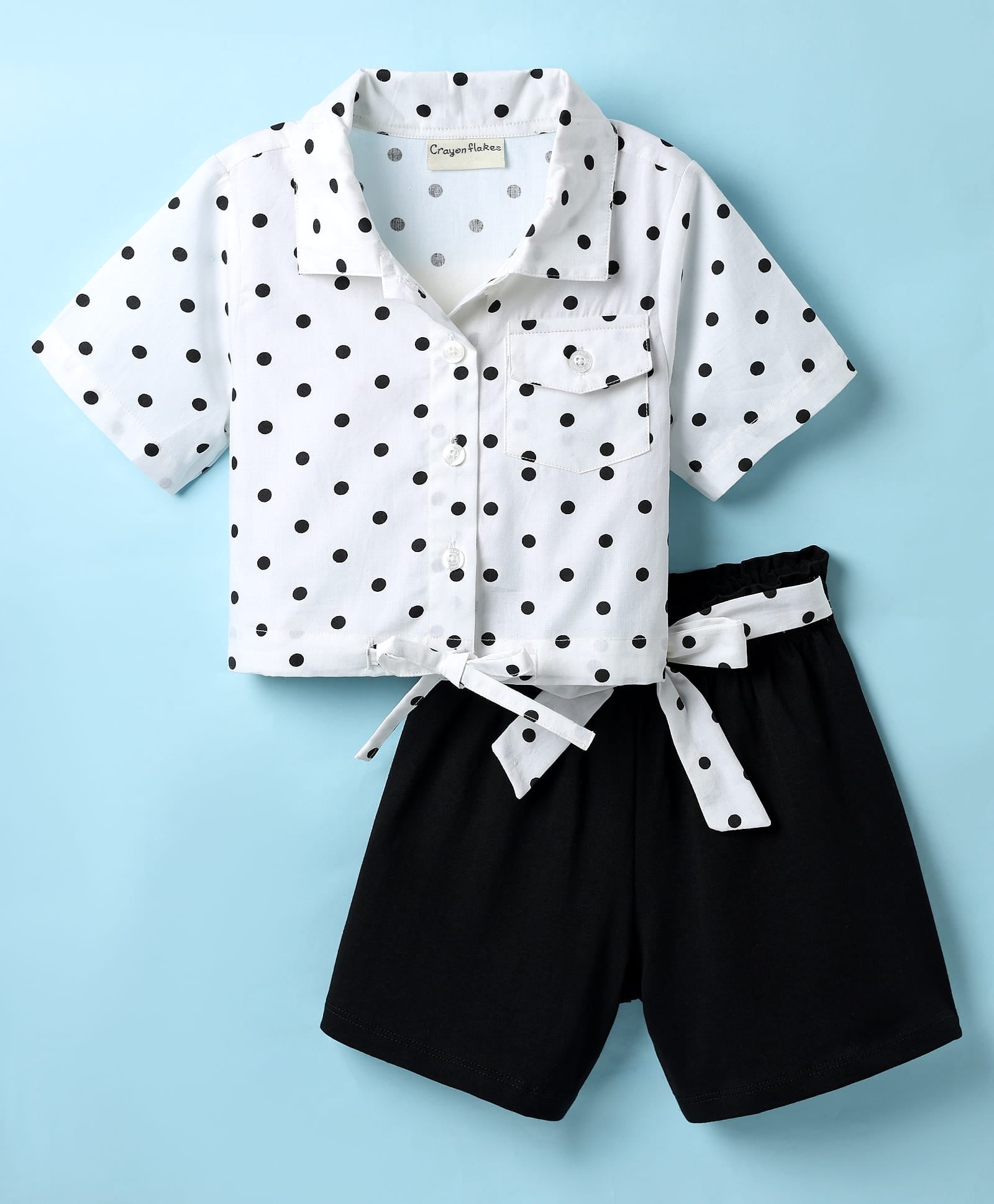Polka Crop Shirt and Belted Short Cotton Set
