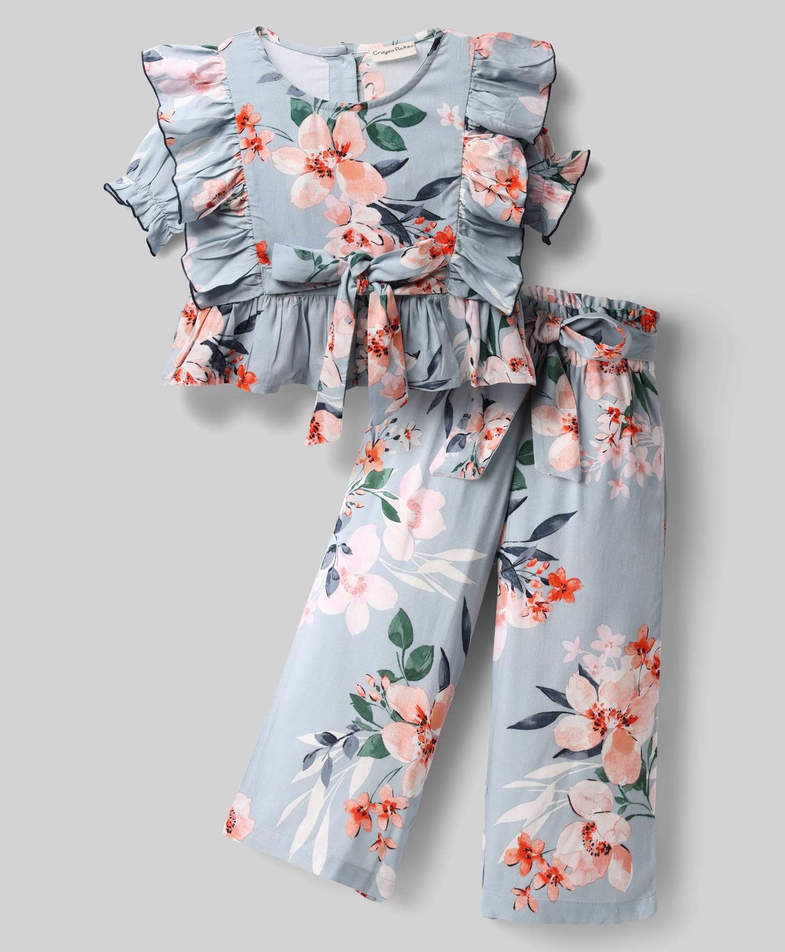 Floral Printed Frilled Crop Top and Pant Co-ord Set