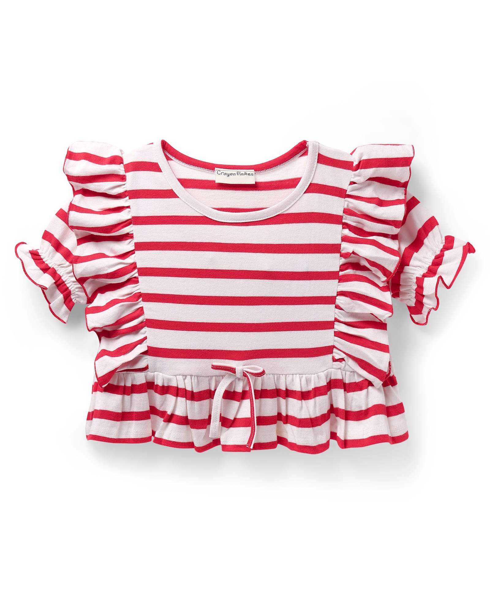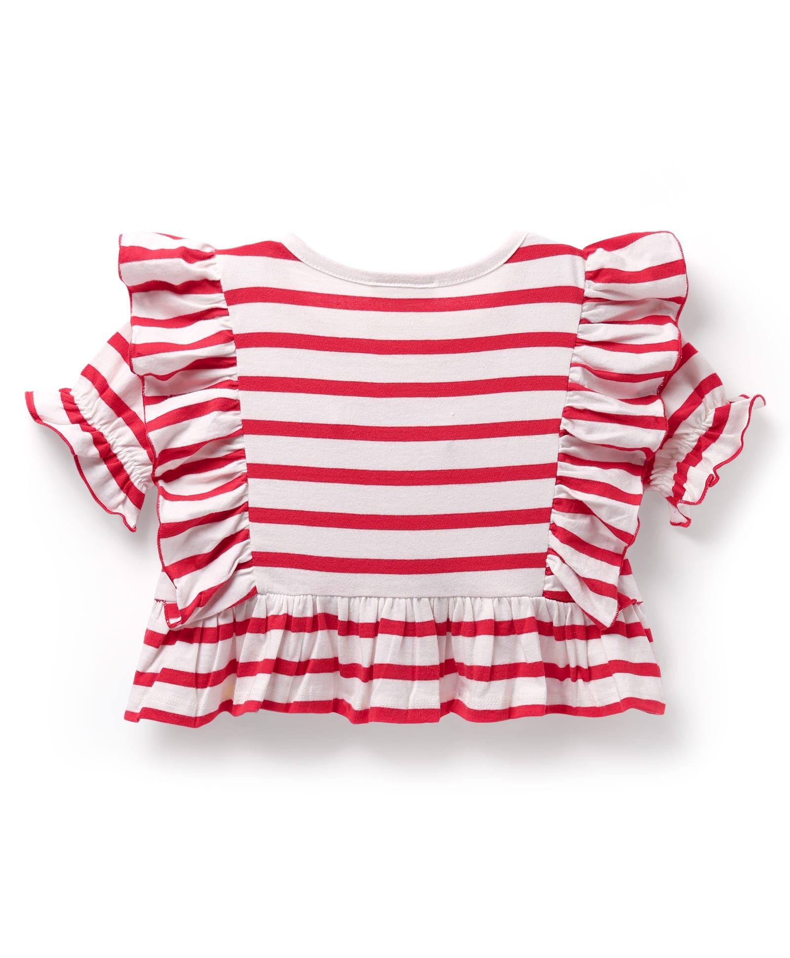 Cotton Striped Frilled Crop Top and Pant Set