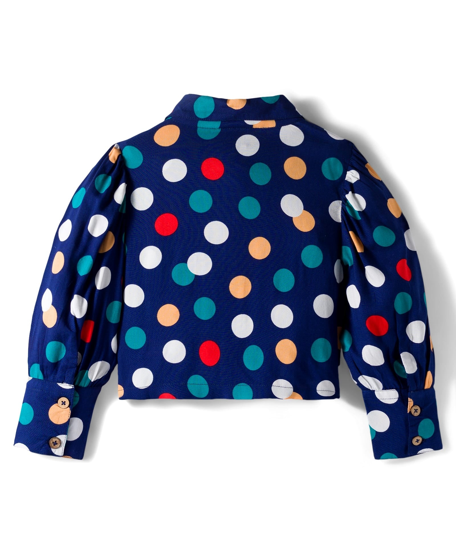 Polka Printed Woven Top and Waffle Culotte Pant Set