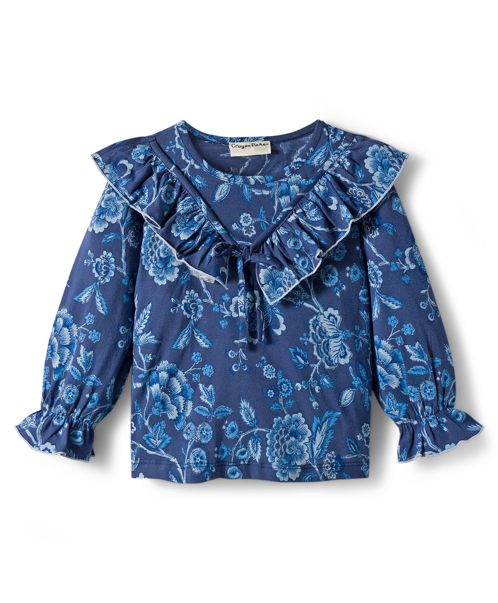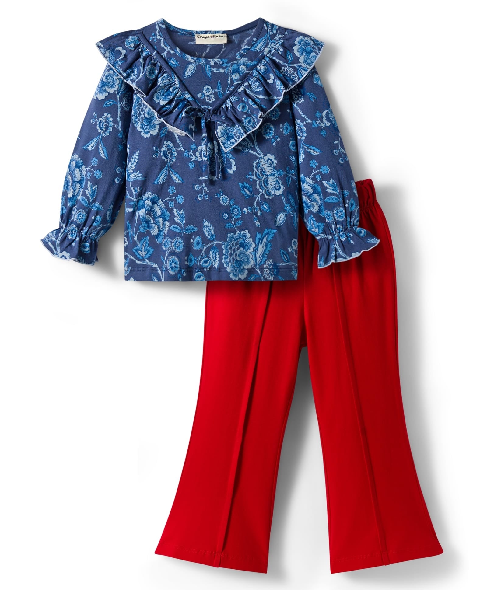 Cotton Floral Printed Ruffled Top and Culotte Pant Set