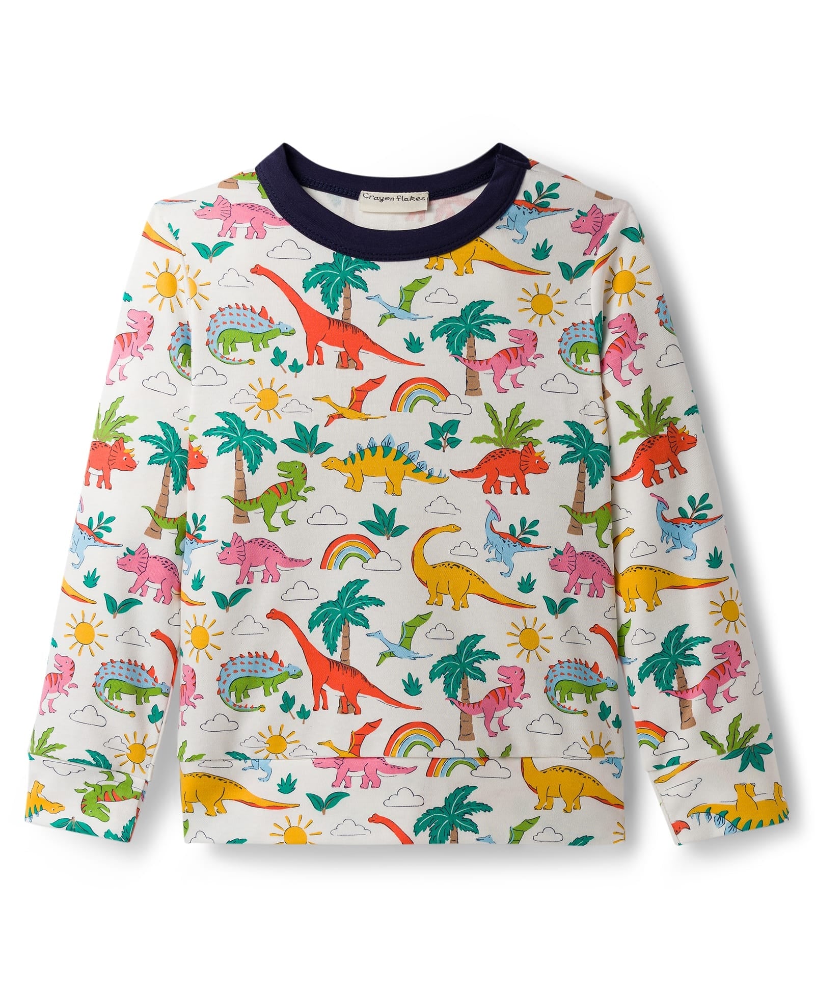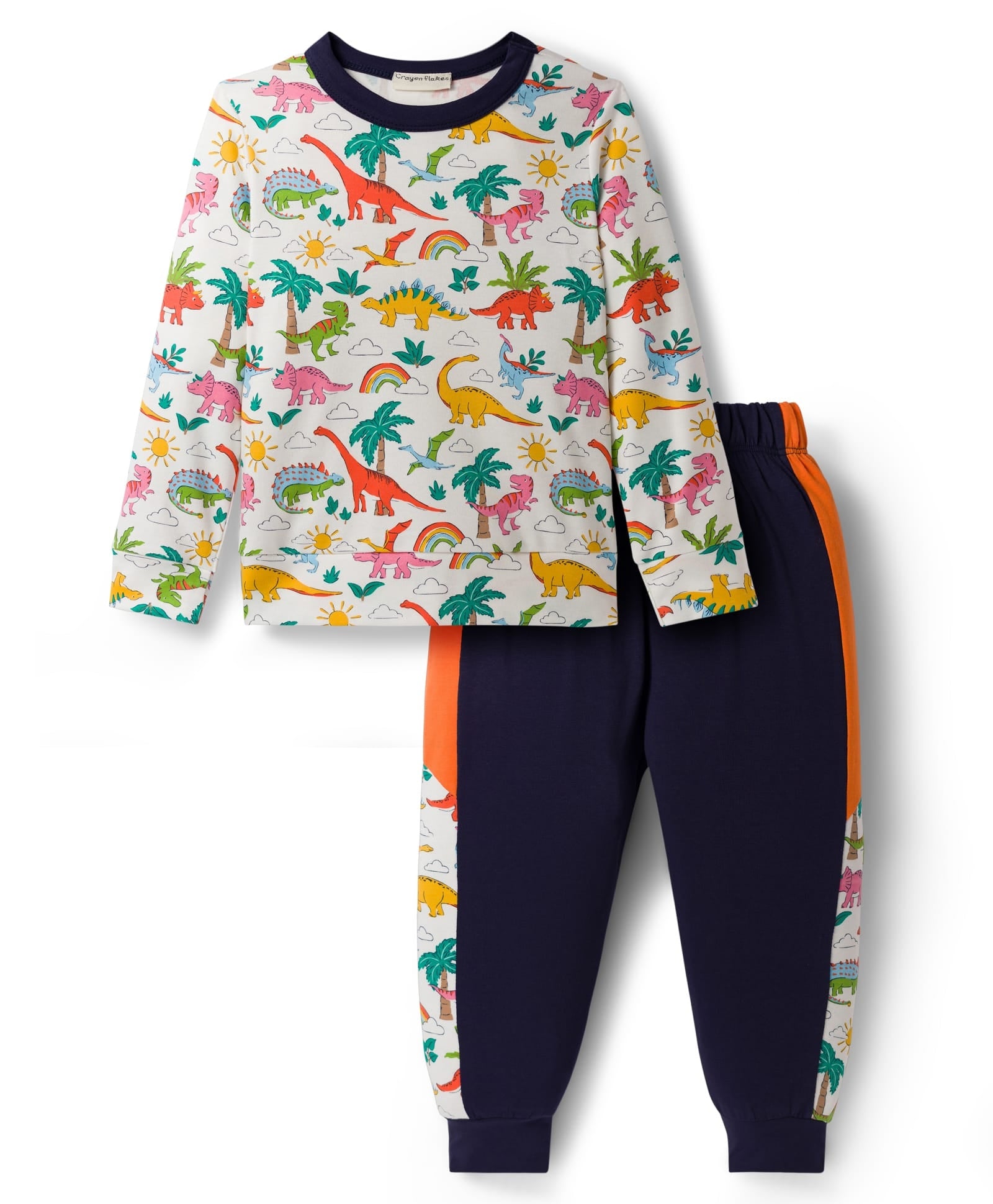 Dinosaur Printed Cotton Tshirt Side Taped Jogger Set