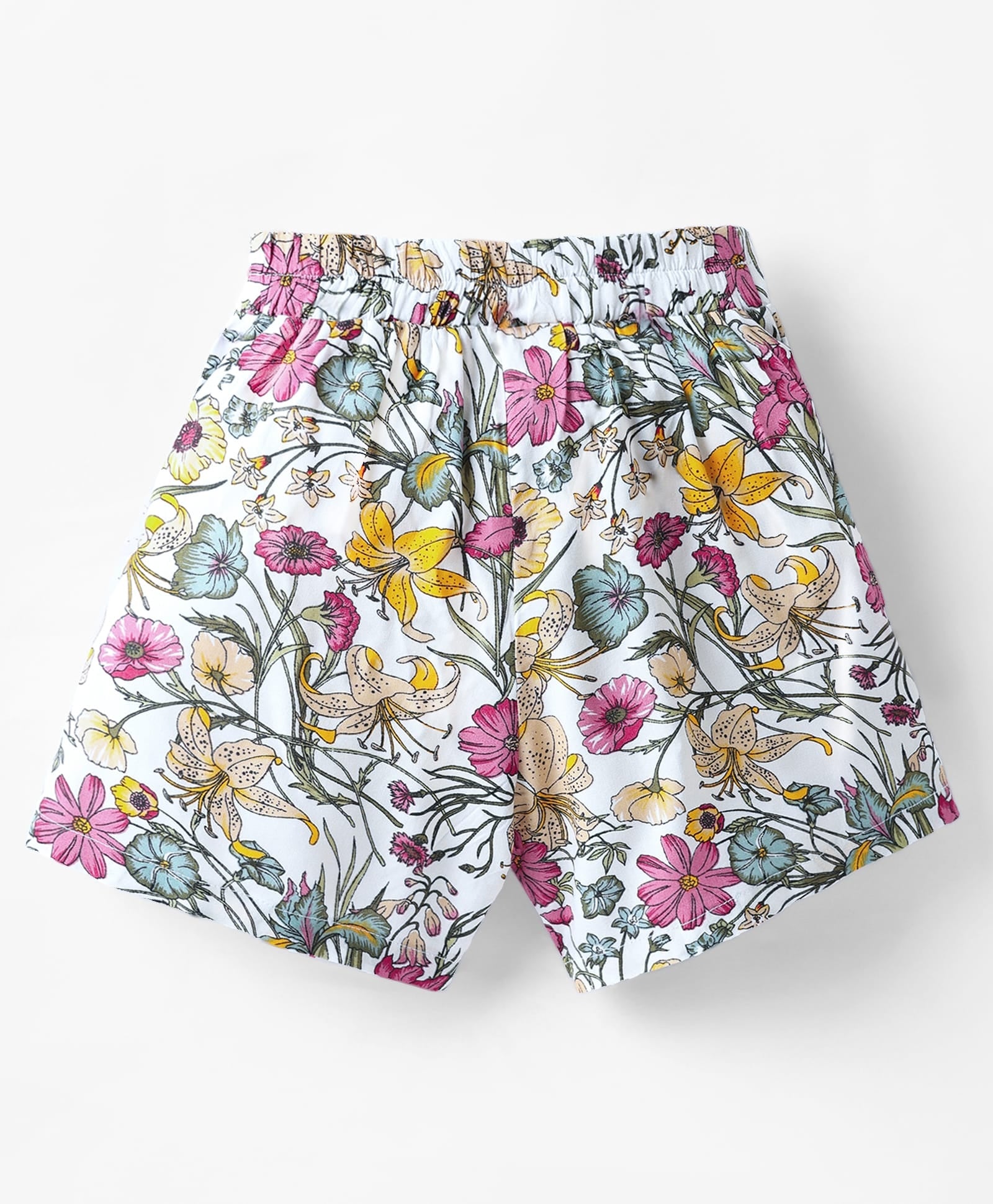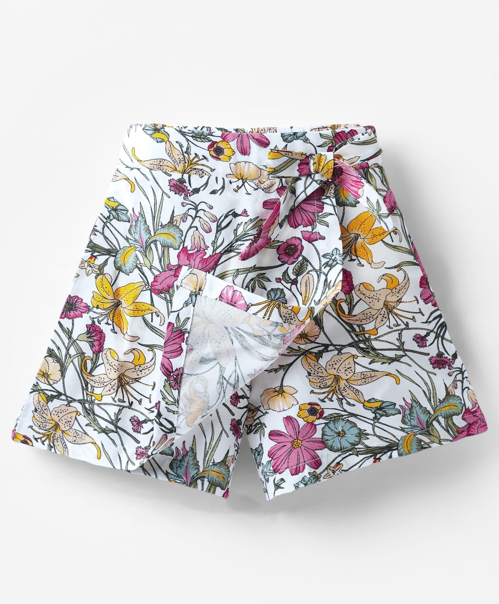 Floral Printed with Bow Applique Skorts - Offwhite