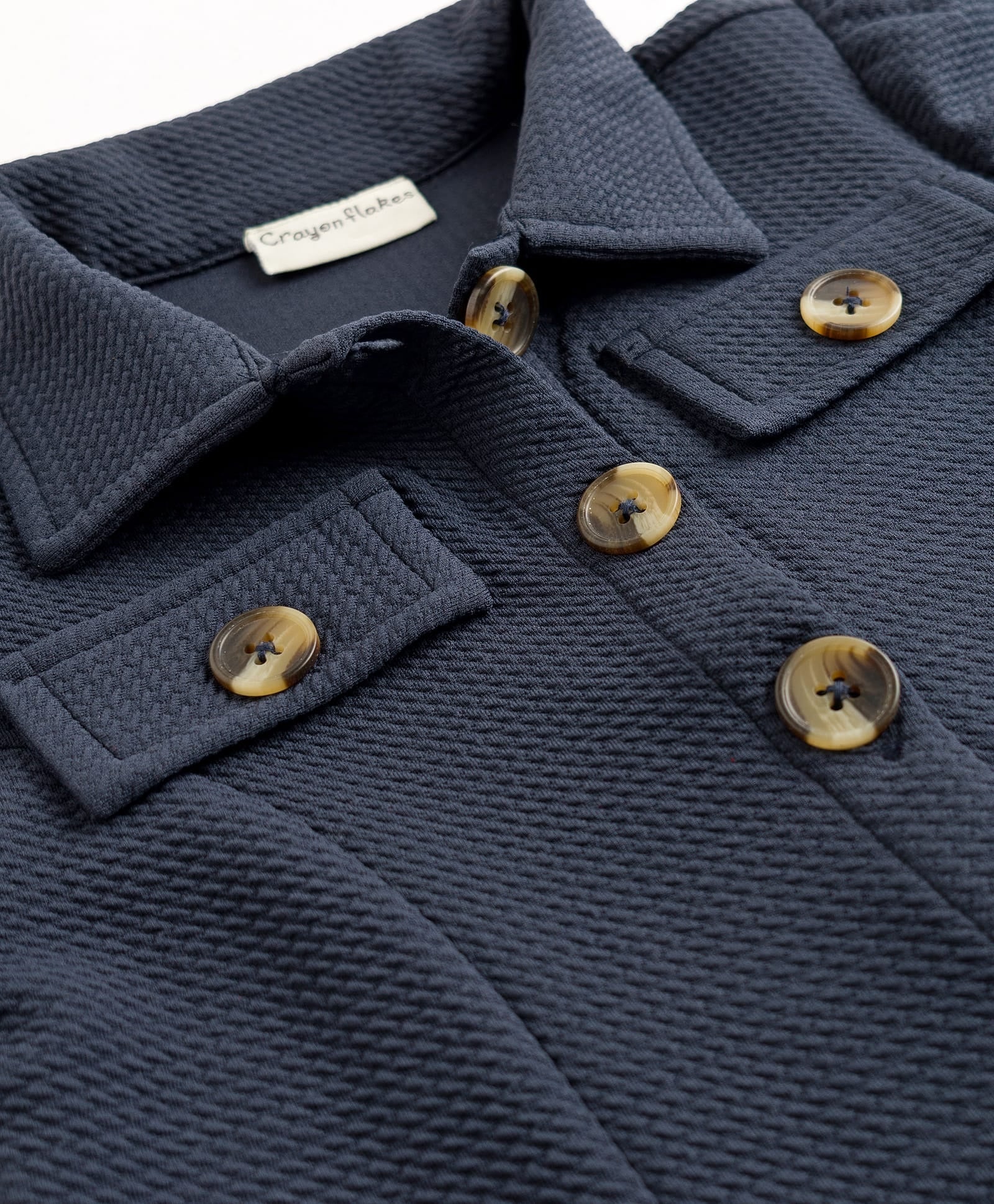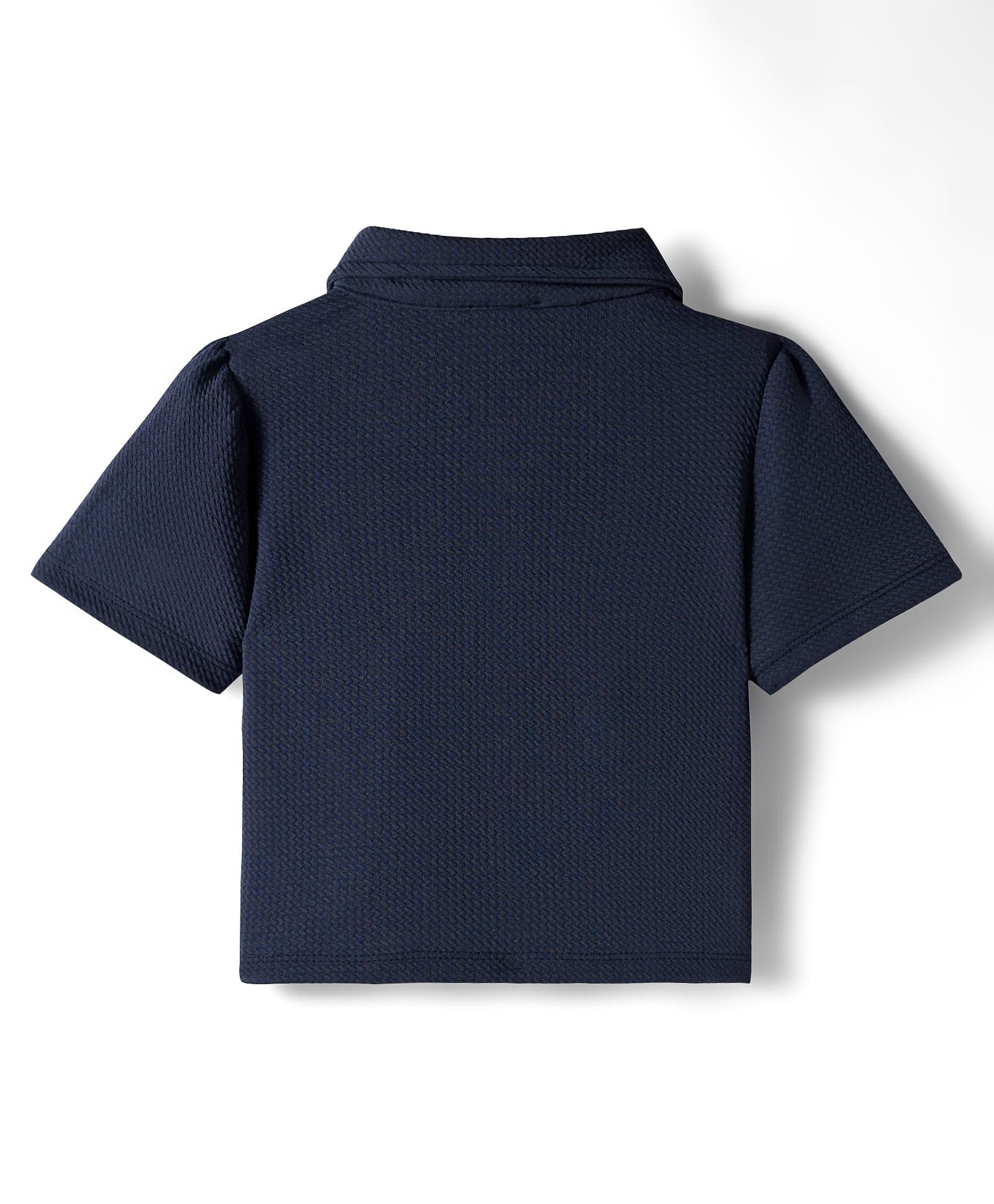 Waffle Knit Collar Neck Solid Half Sleeves Top